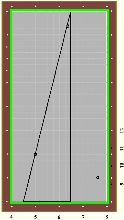 Der Abstand auf der Startseite von der senkrechten Linie zu der von Ball 1 auf Ball 2 ergibt einen Wert der in Diamanten definiert ist.