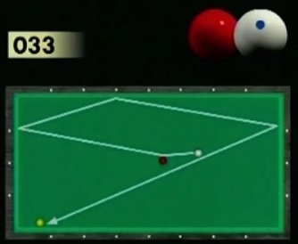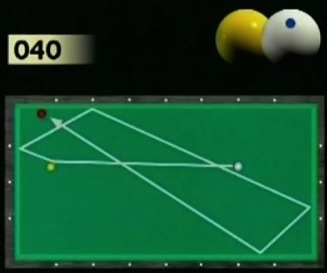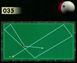 Hier werden die häufigsten Lösungsmuster im Dreiband aufgezeigt mit Stoßpunkt und Schnittpunkt mit Ball 2: