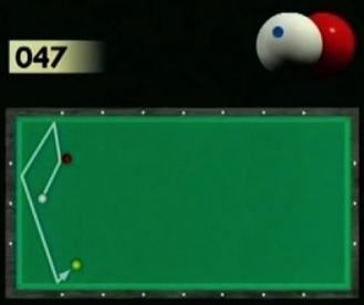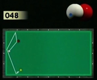 Hier werden die häufigsten Lösungsmuster im Dreiband aufgezeigt mit Stoßpunkt und Schnittpunkt mit Ball 2: