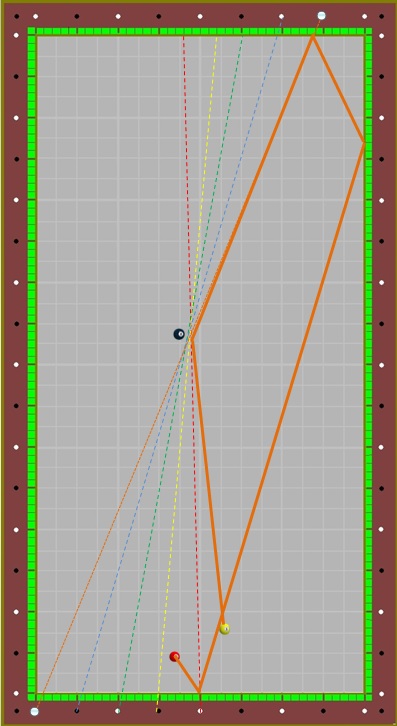 So lange Ball 1 recht nahe an der Startbande liegt ist der Lösungsweg recht einfach.