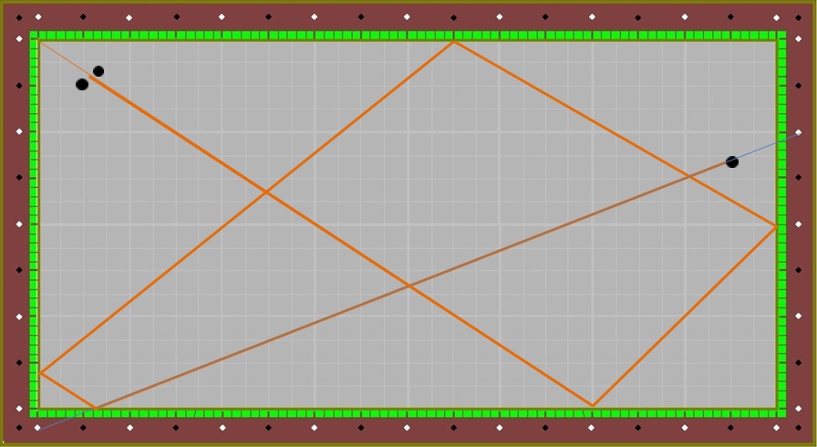 K1 = nicht parallel zu B45/A50 (links!) - 5 an Bande 3 aber nicht an Bande 4