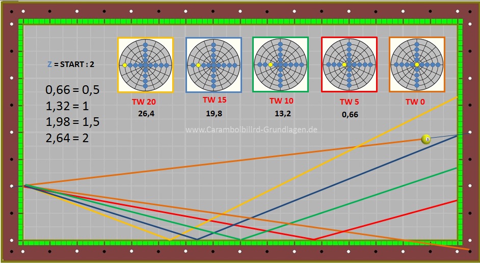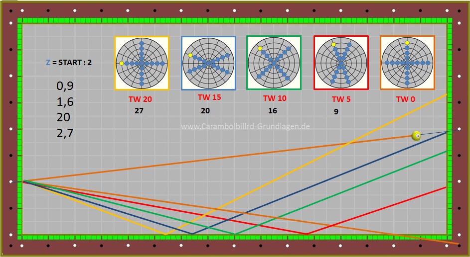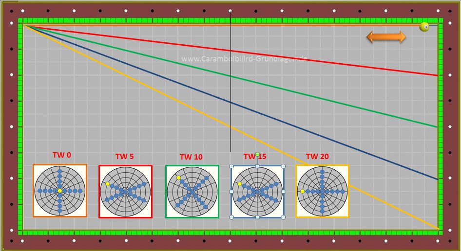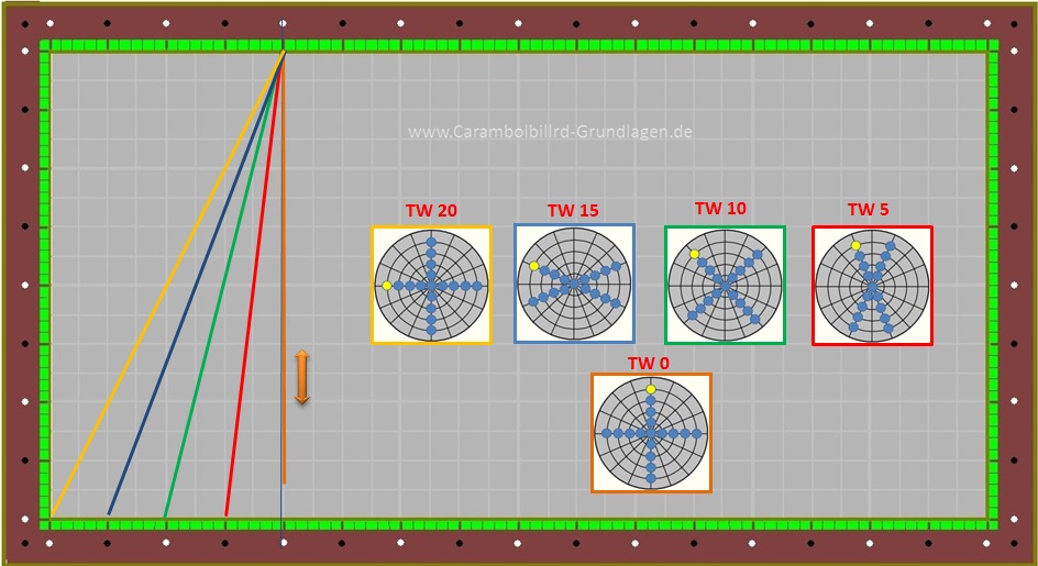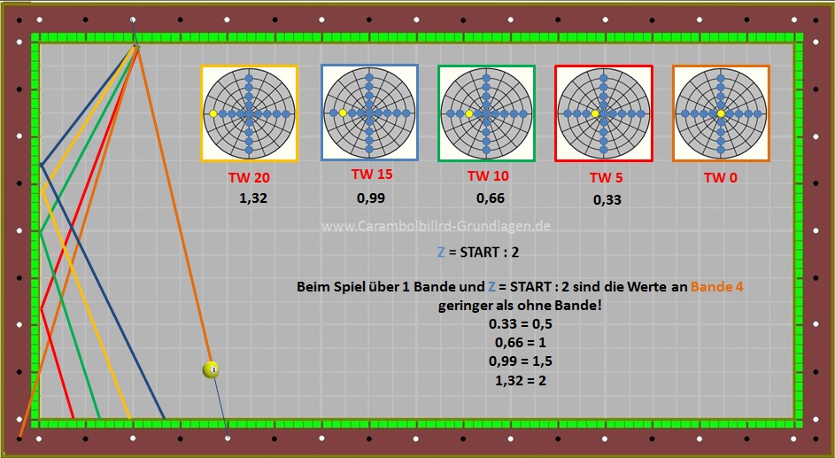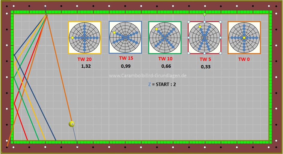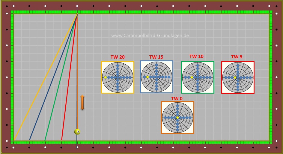 Da Ball 1 aber sehr viele unterschiedliche Stoßpunkte beinhaltet kommt es auch dazu das ein TW = 10 nicht immer den