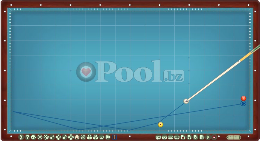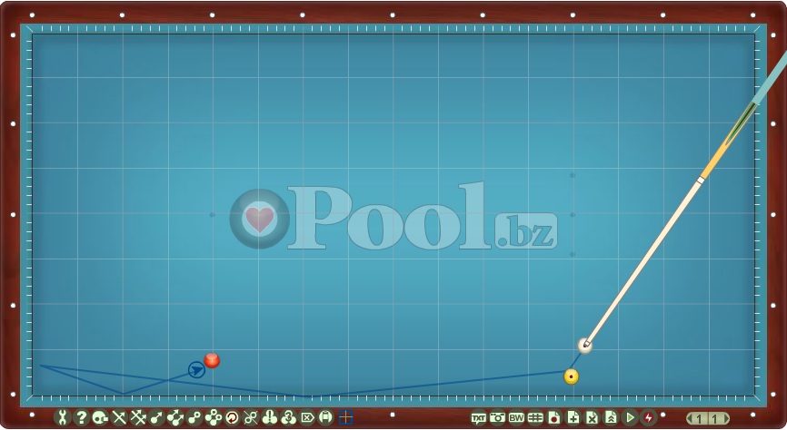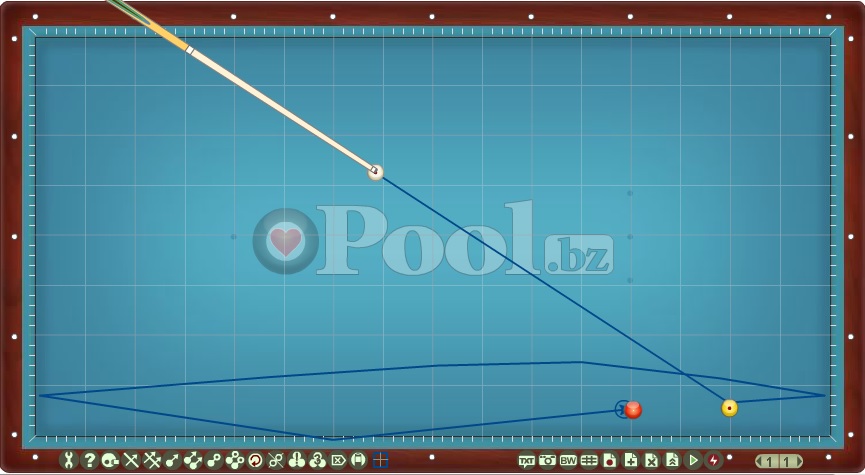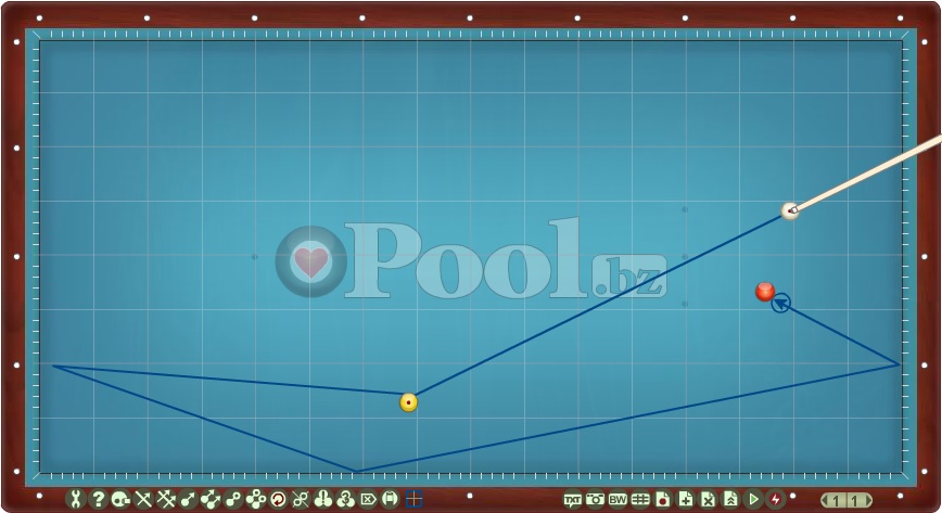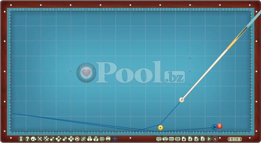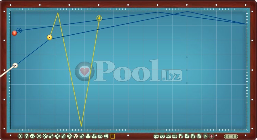 Zumeist wird hier mit gegenläufigem Effet auf Ball 2 gespielt.