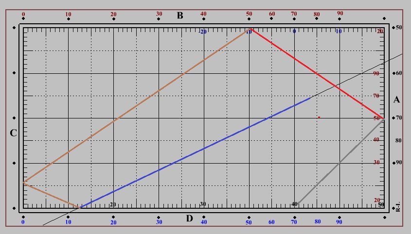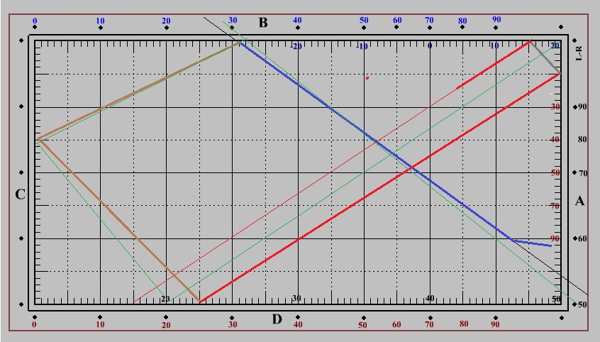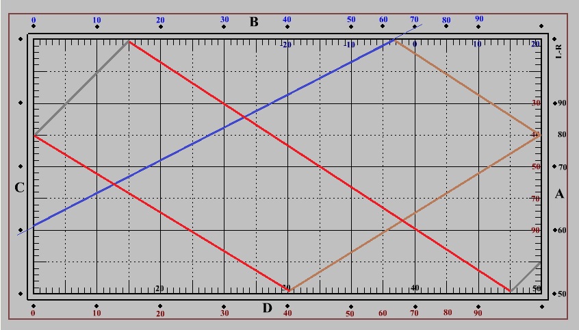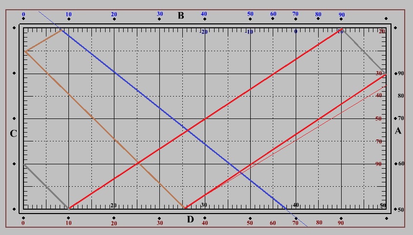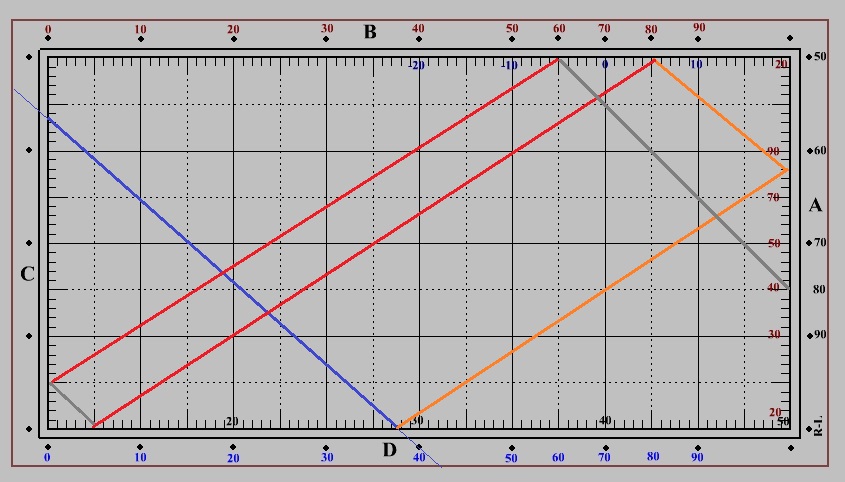 Spielrichtung hier von Bande B nach Bande D (Startbande = A)