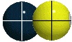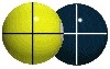 Es wird sowohl der Stoßpunkt an Ball 1 angezeigt als auch der Tangierungspunkt von Ball 1 an Ball 2.