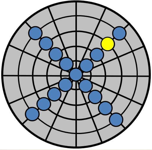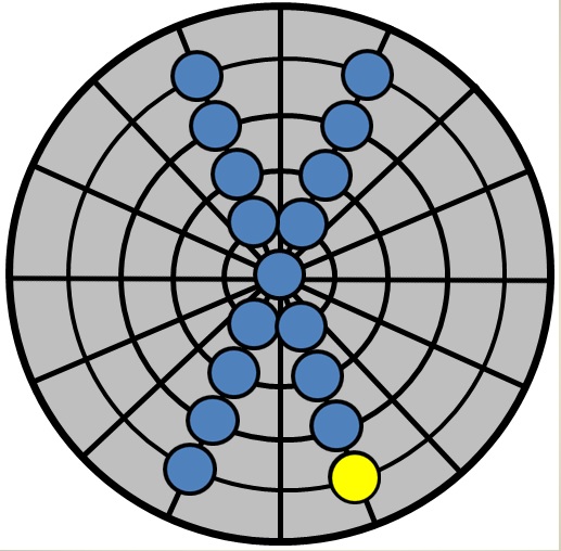 Die %-Zahl neben Ball 2 gibt den ungefähren Abdeckungsgrad von Ball 1 auf Ball 2 an!