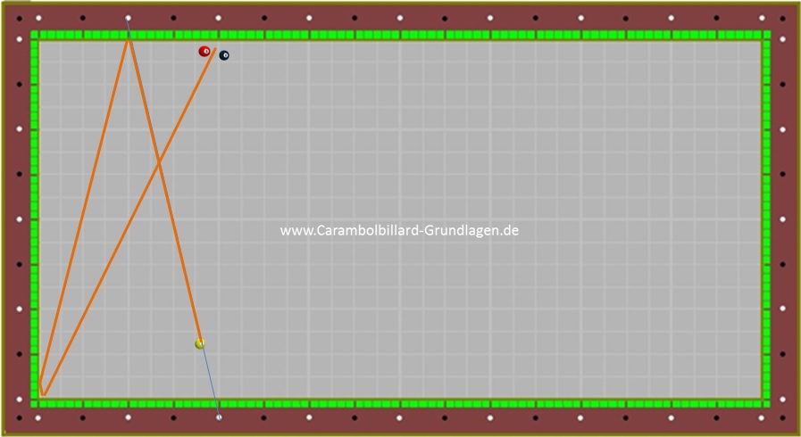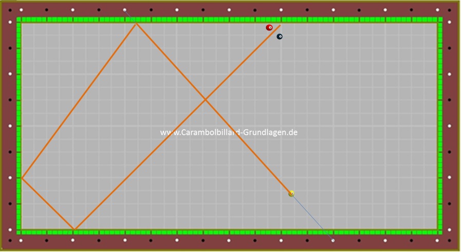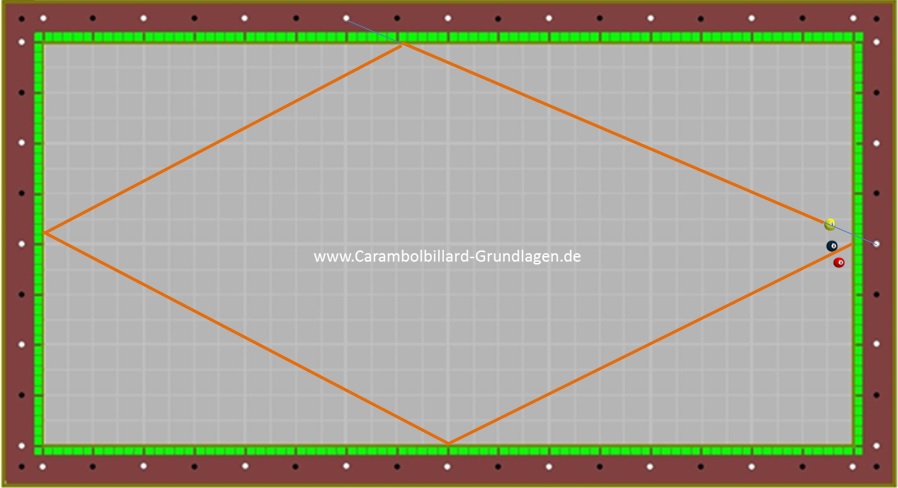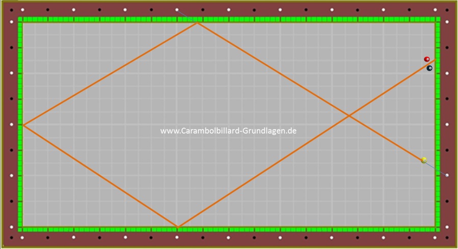 Der einzige Bezugspunkt am Billardtisch der eine mathematische Skalierung erlaubt sind die Diamanten auf den Banden.