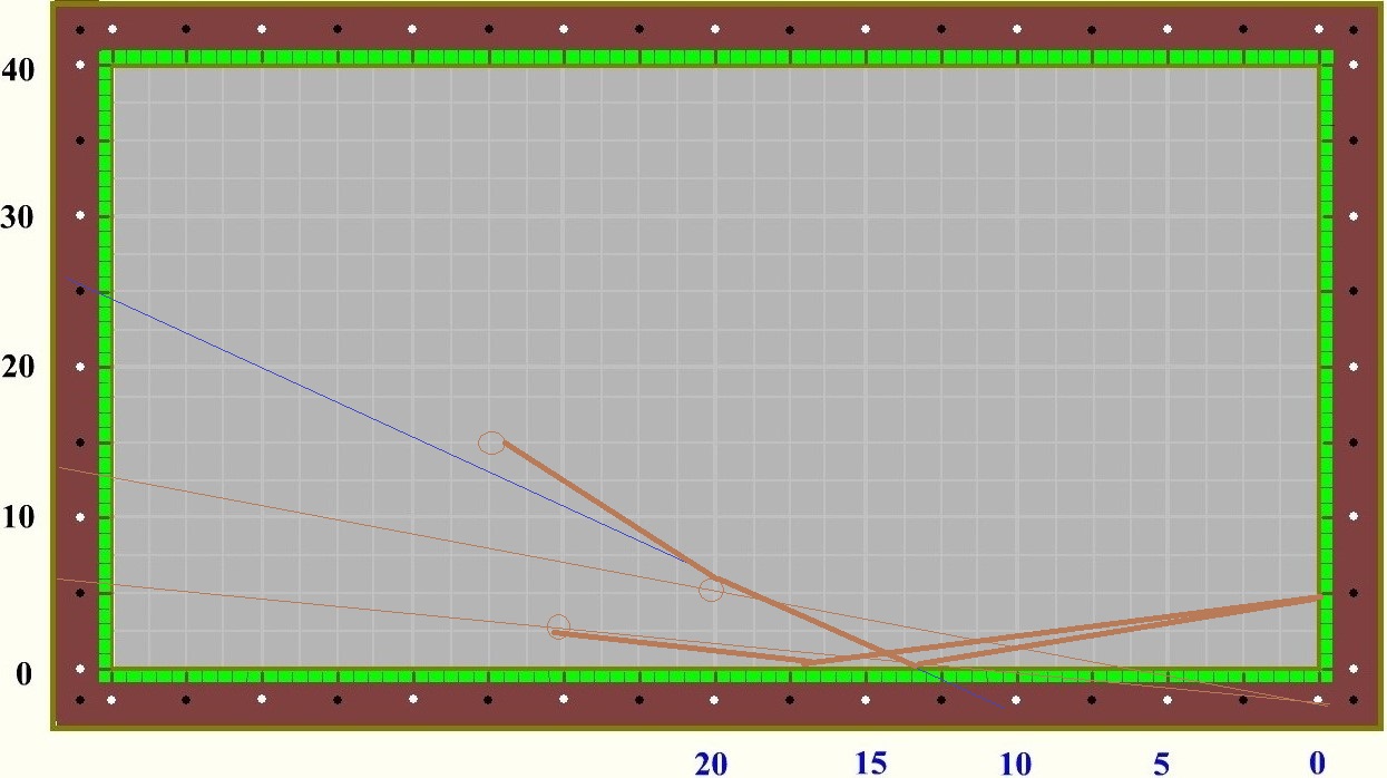 Also der direkte Stoß auf Ball 2 + 3 sowie der indirekte Stoß über Ball 2 auf Ball 3.