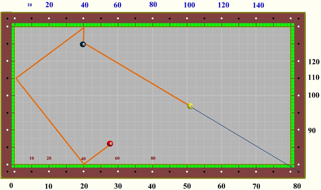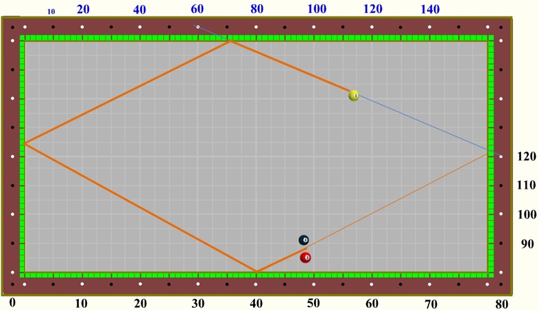 Ist der Startpunkt die kurze Bande (A/C) dann gilt Ankunftsskalierung = Startskalierung