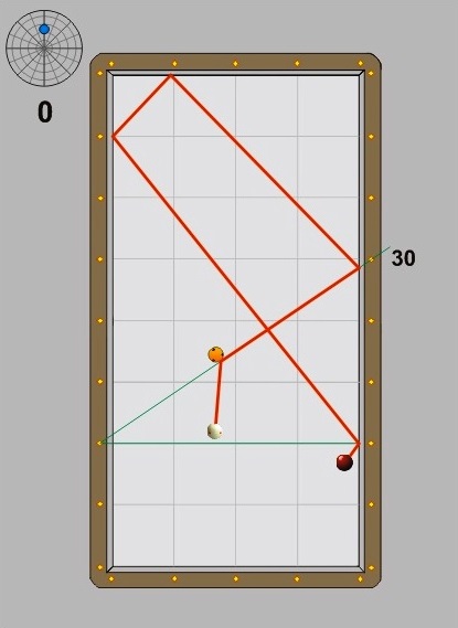 Liegt Ball 3 nahe der 4. Bande oder zwischen Bande 3 + 4 wird auf dem Umkehrpunkt an der 3. Bande
