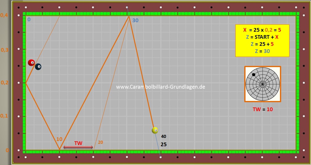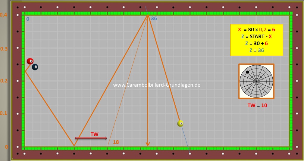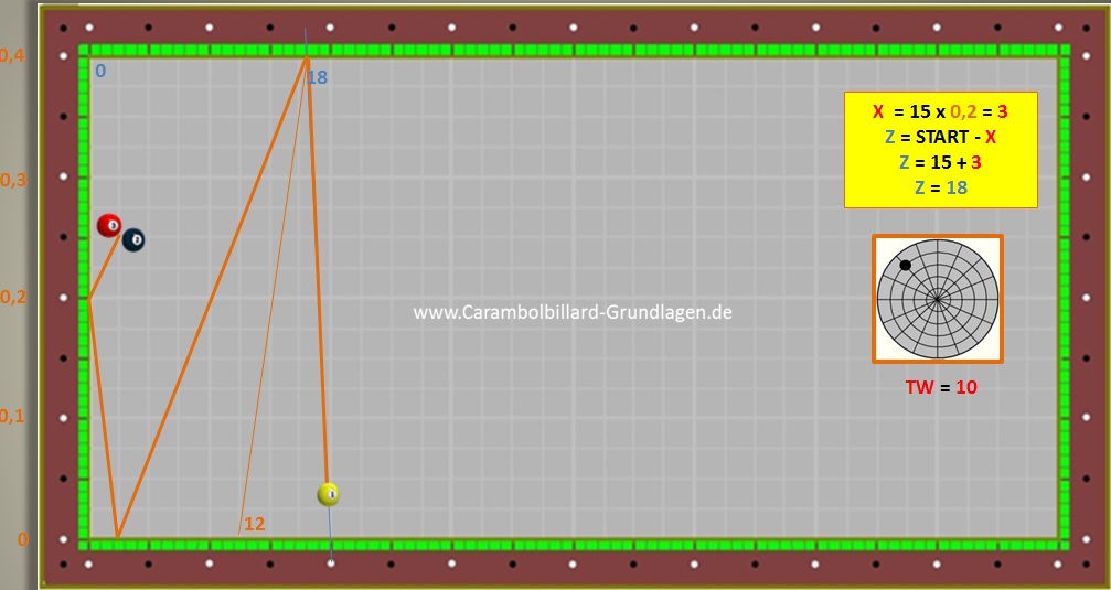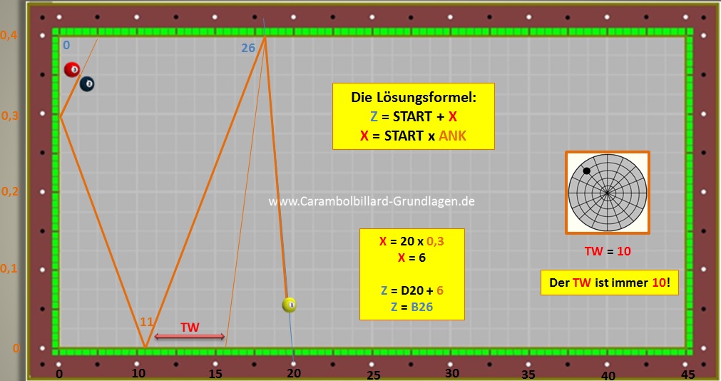 Dieses numerische Lösungssystem Base 45 ist eine Alternative zum Querrpendler wenn Ball 2/3 an derr kurzen Bande liegen.