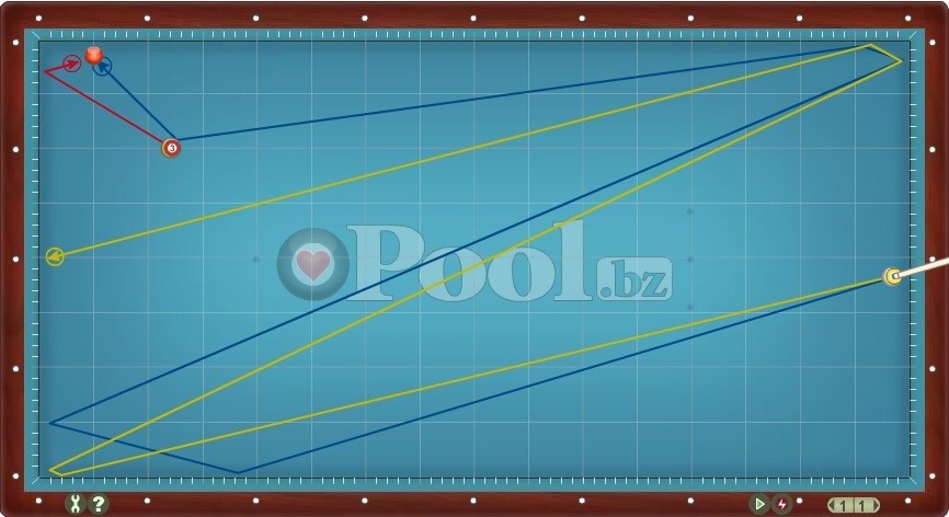 Spielt diese Ecke mit etwas Laufeffet an, bei gleichem Linienverlauf kann der Abstand von Ball 3 zur rechten Bande