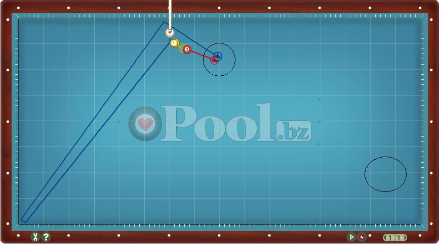 In dem Fall sollte man den Spielball kürzen und über 5 Banden schicken, wie im Bild gezeigt.