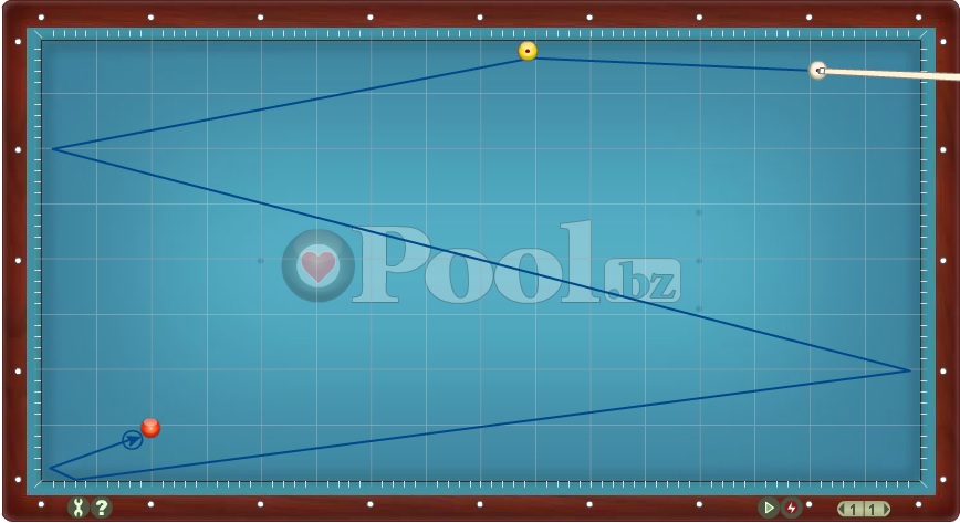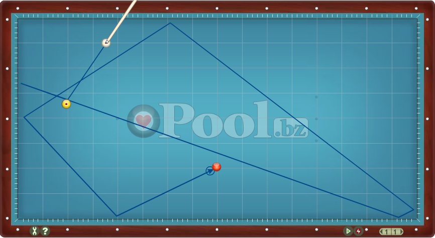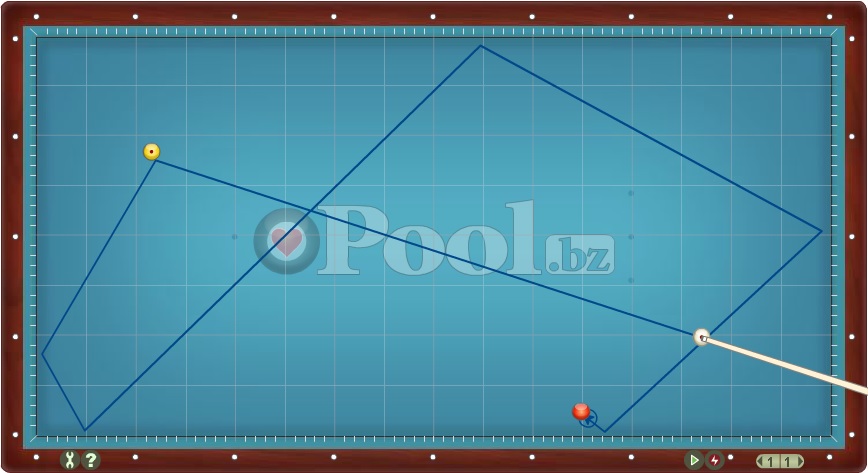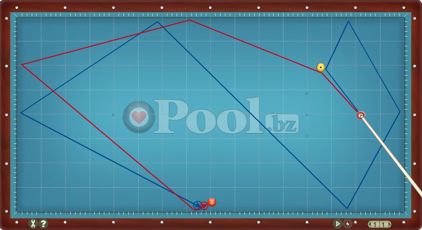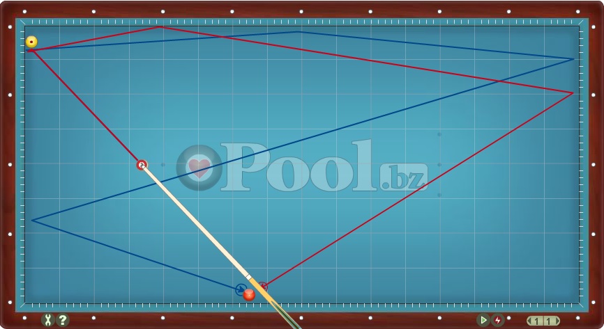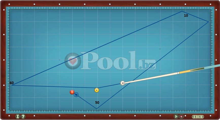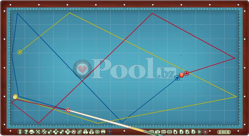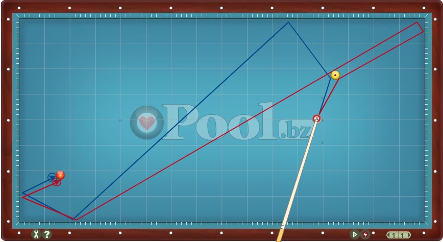 Weiterhin wird der Stosspunkt an Ball 1 und der Treffpunkt an Ball 2 aufgezeigt.