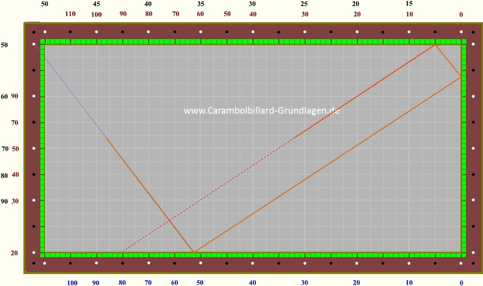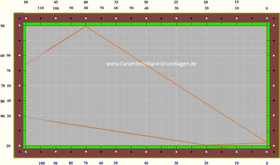 Negative Korrekturwerte sind immer dann zu erwarten wenn die Ziellinie einen spitzen Winkel zur Zielbande aufzeigt.