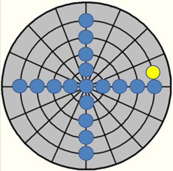 Ist es ein direkter Stoß über 3/4/5/6 Banden ist der Winkel den Ball 2/3 zu der jeweiligen Bande einnehmen sehr wichtig.