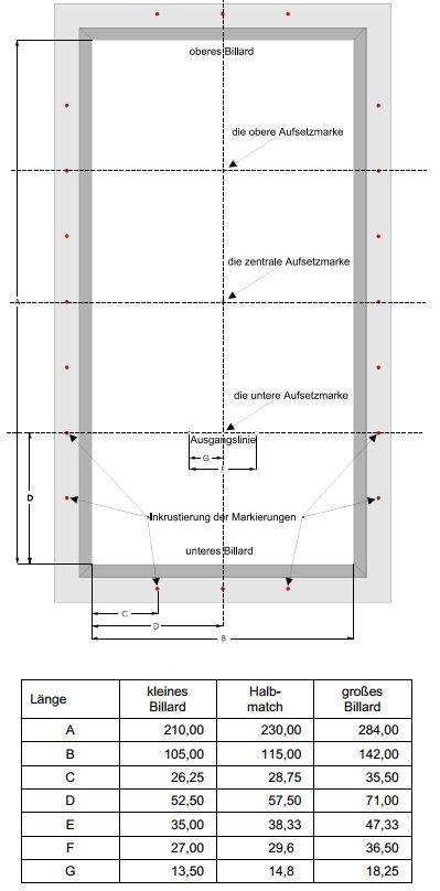 Jeder Billardtisch besteht aus folgenden Komponenten/Markierungen: