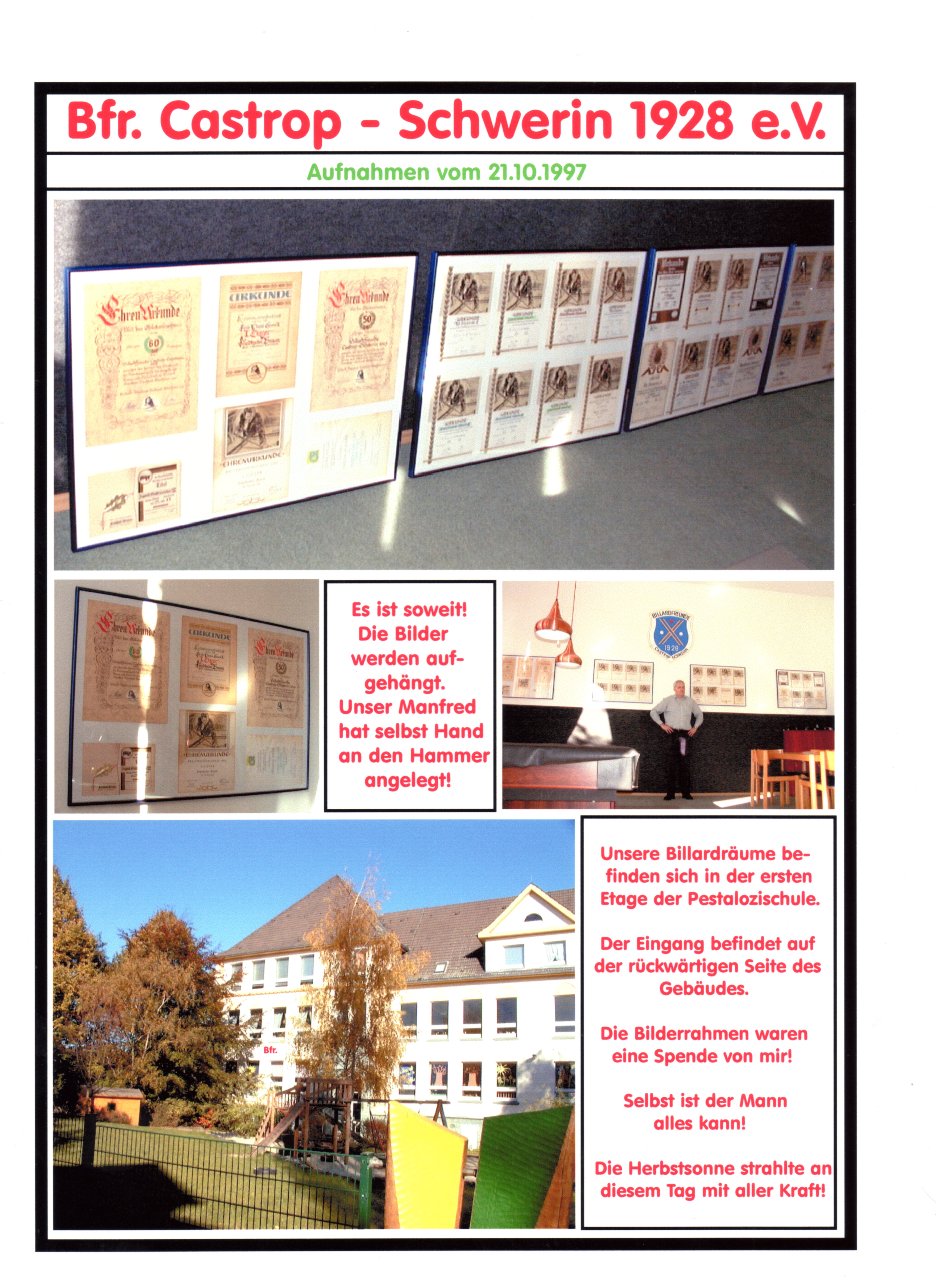 Die hier aufgezeigten Bilder stammen aus den Vereinsräumen der Bfr. Castrop-Schwerin 1928 e.V.