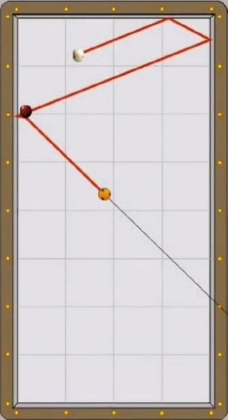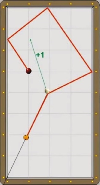 Fährt die Maus über das jeweilige VLM erscheint das Lösungsmuster bzw. der richtige Stoßpunkt an Ball 1.
