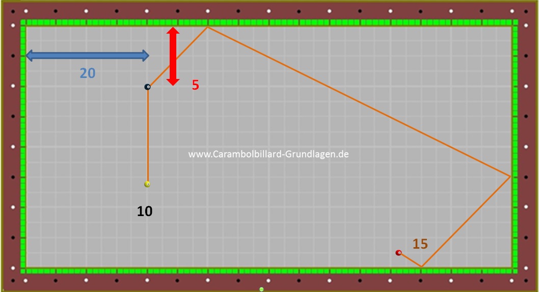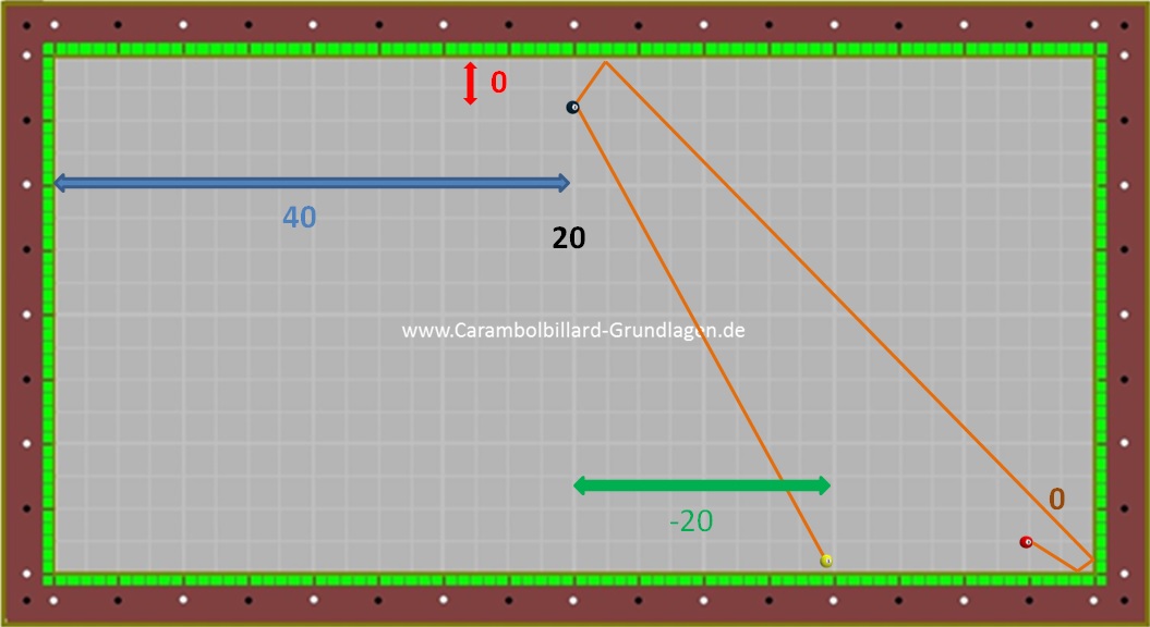 Bezugspunkte sind hier nur die Diamanten auf der Bande.