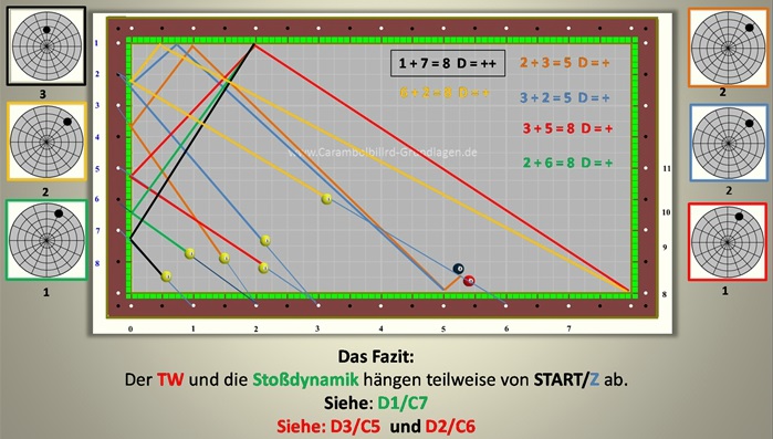 Bei allen Lösungssstemen wird mit aktivem Effet von TW = 10/15 auf die kurze Bande gespielt