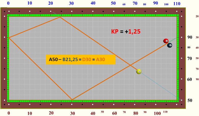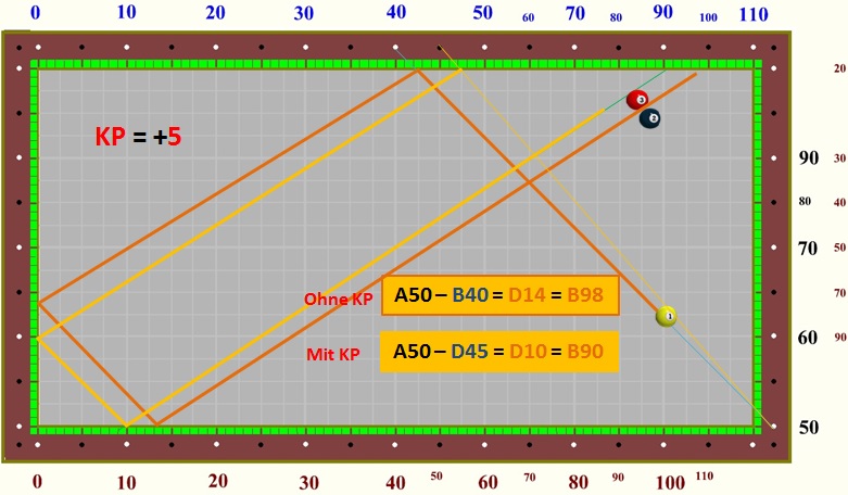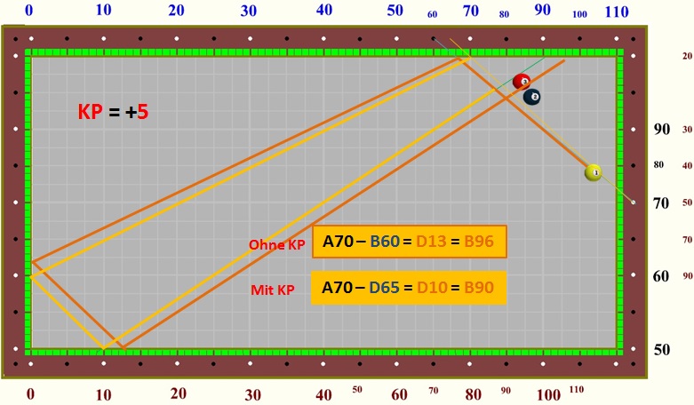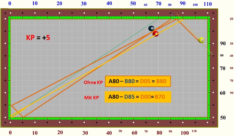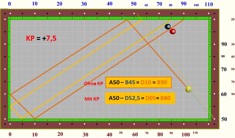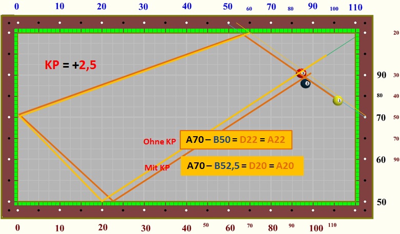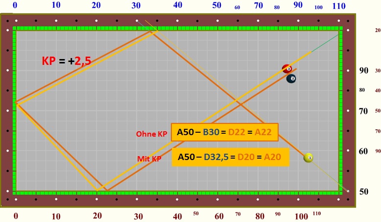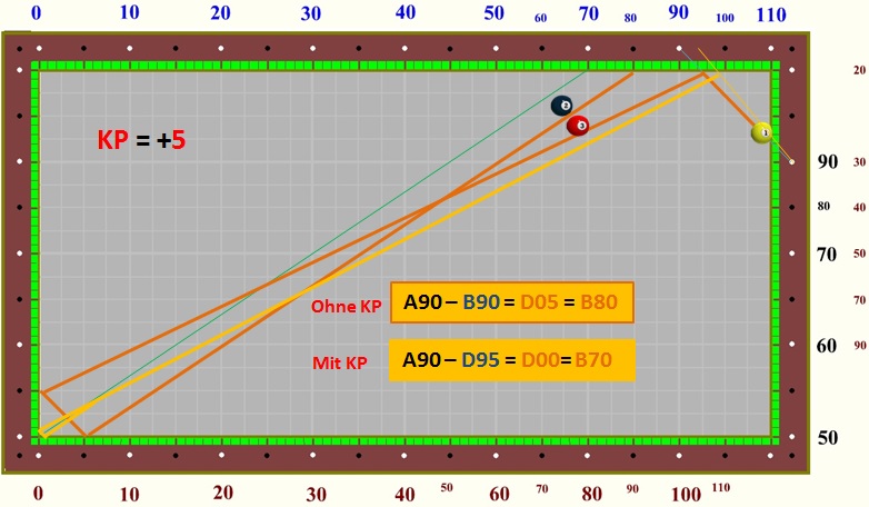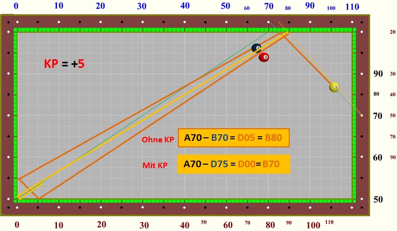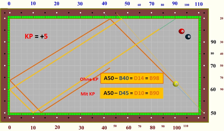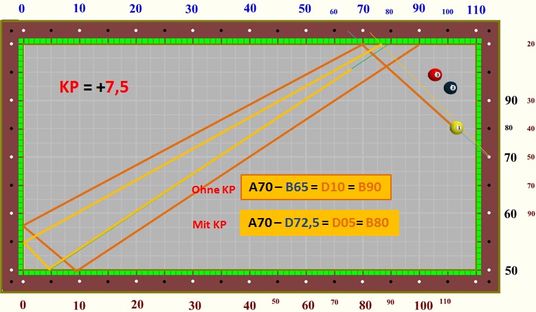 im Dreibandspiel einsetzen, da es recht einfach zu berechnen ist.